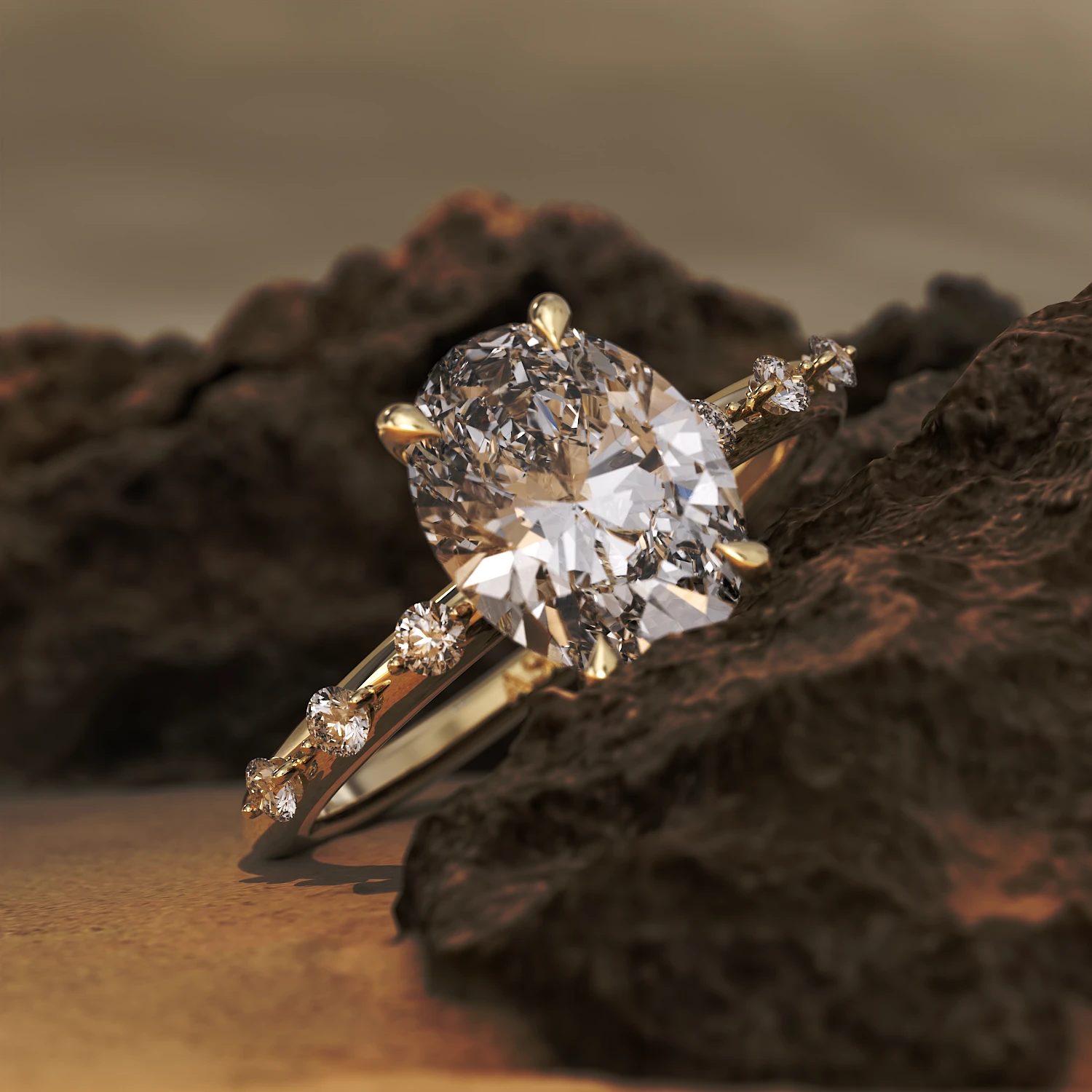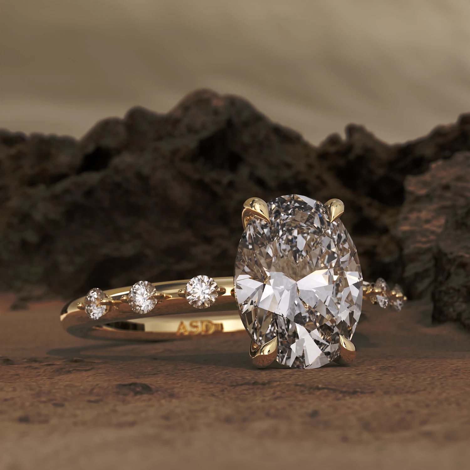 Oval diamonds provide an elongated silhouette that can make fingers appear longer and more slender. They offer similar brilliance to round diamonds while providing a unique, distinctive appearance.