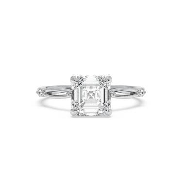 Burnley features a timeless: Asscher Hidden Halo Diamond Band Ring 2.50ct Asscher D VVS2 2xExl None IGI Lab-Grown Diamond, elevated by a hidden halo with 0.25ct D VS side stones. (Customisable to your exact specifications—please enquire.) Available in 18K White, Yellow, or Rose Gold, as well as Platinum