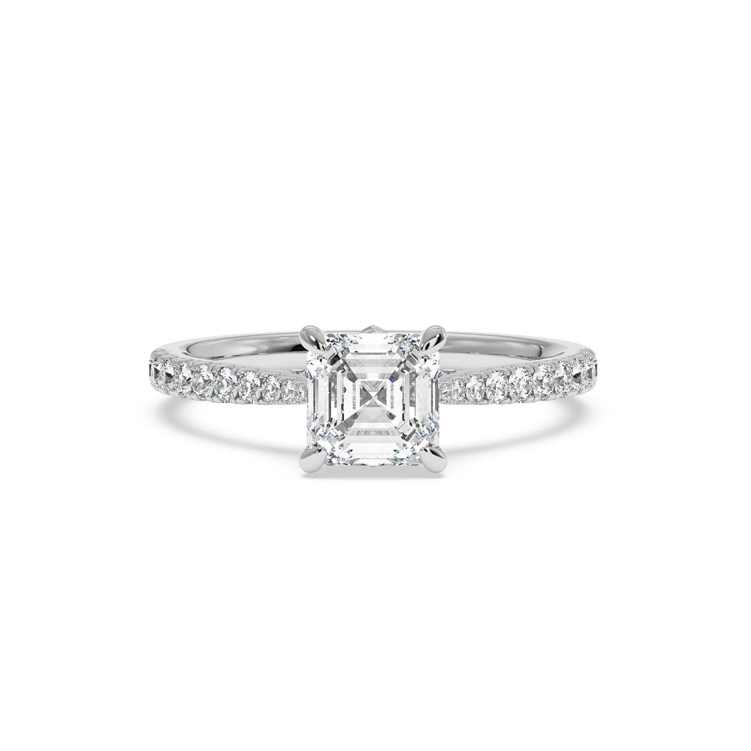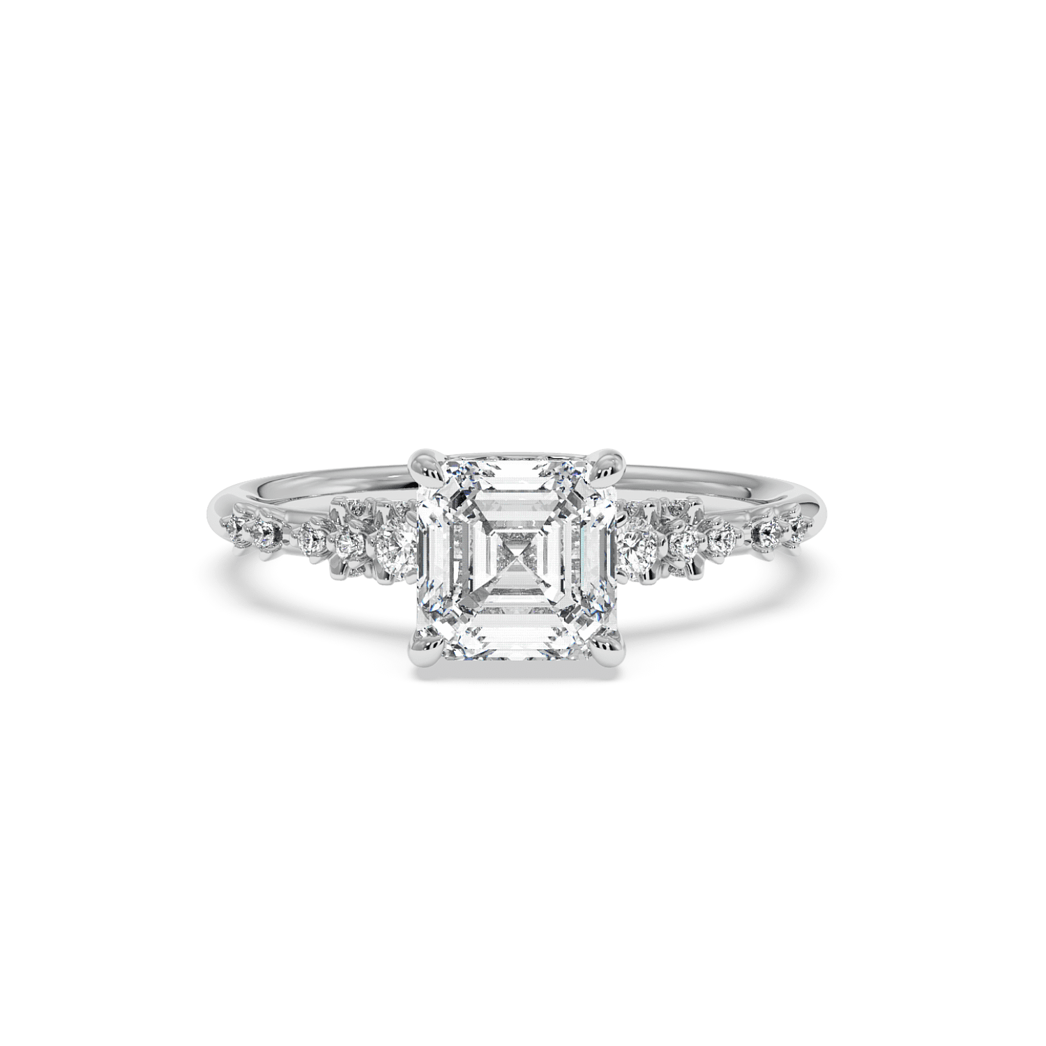 2.50ct Asscher D VVS2, 2xExl None IGI Lab-Grown Diamond in a pave setting, complemented by 0.45ct D VS side stones. (Customisable to your exact specifications—please enquire.)