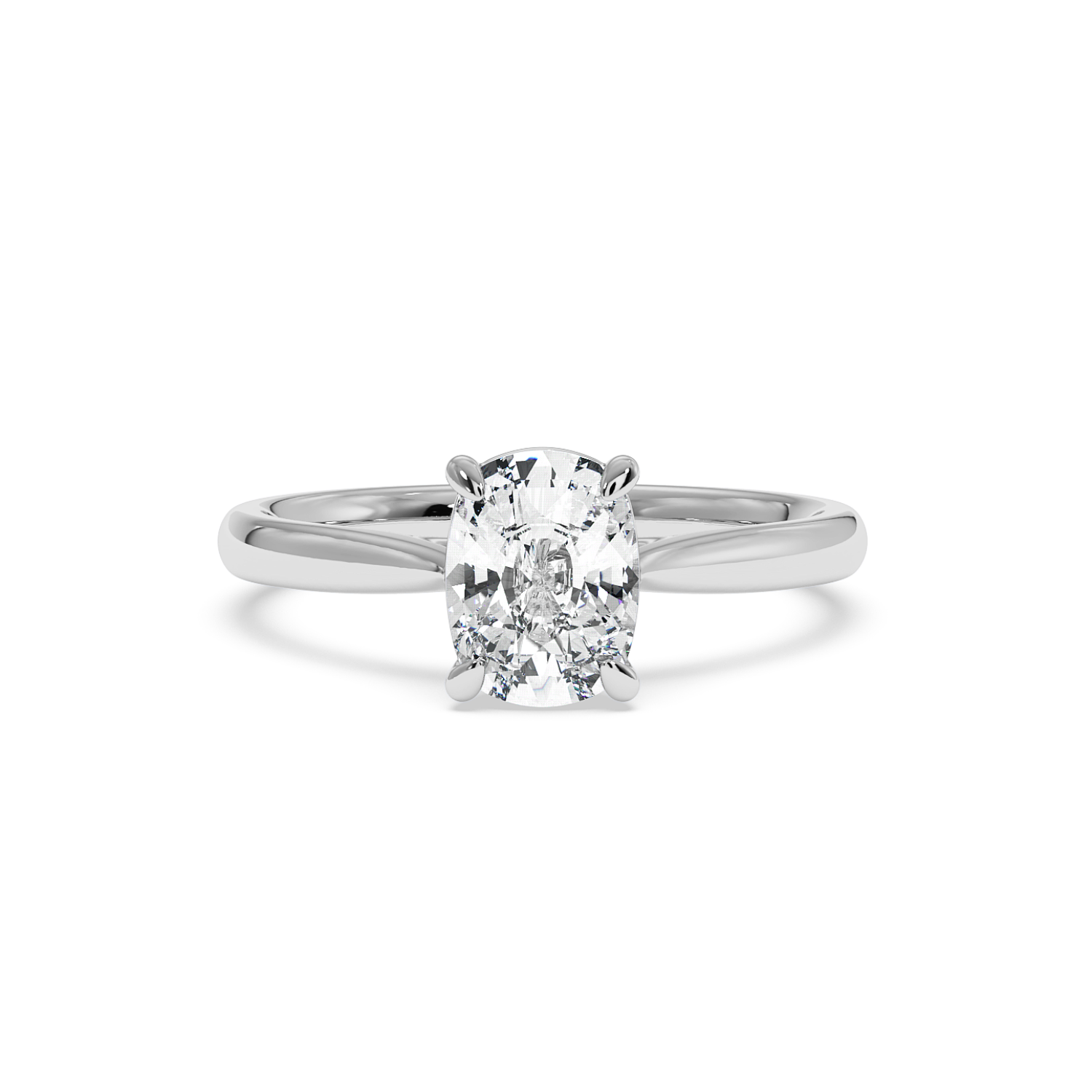 1.50ct Elongated Cushion E VS1, 2xExl None GIA Natural Diamond in a timeless solitaire setting.